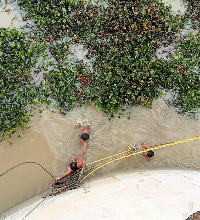 महापौर धीरज बाकलीवाल के मार्गदर्शन पर आज जलकार्य प्रभारी संजय कोहले द्वारा जलकार्य निरीक्षक नारायण ठाकुर एवं जलकार्य विभाग की टीम के साथ शिवनाथ नदी के साइफन में फंसे कचरे 24 एमएलडी के इंटकवेल के किनारे आस पास से झिल्ली पन्नी कचरा निकाला गया,इंटकवेल में नीचे उतरकर सायफन में फंसे कचरे को सफाई करवाया।नगर निगम की टीम मौके पर 40 फीट गहराई में उतर कर पम्प में फंसे झिल्ली पन्नी को बड़ी मशक्कत के बाद कचरे को बाहर निकालकर सफाई किया गया।