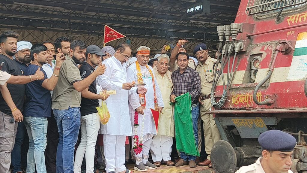ट्रेन को संत युधिष्ठिर लाल ने हरी झंडी दिखाकर किया रवाना,रेल्वे स्टेशन में गूंजे जय श्रीराम के जयकारे…