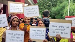 इस क्षेत्र में रहने वाले महिलाओं का कहना है कि शाम को 5 से 10 बजे के बीच असामाजिक तत्वों द्वारा यहां सड़क पर बैठकर शराब पीते हैं,, जिसकी वजह से इस क्षेत्र में रहने वाली महिलाओं का घर से निकलना मुश्किल हो जाता है शराब सेवन के बाद इन लोगों के द्वारा यहां पर हुड़दंगबाजी व अश्लील हरकतें भी की जाती है,, इसी का विरोध करते हुए आज इस क्षेत्र की समस्त महिलाओं ने जिला मुख्यालय पहुंचकर शराब भट्टी को जल्द से जल्द इस क्षेत्र से हटाने की मांग की