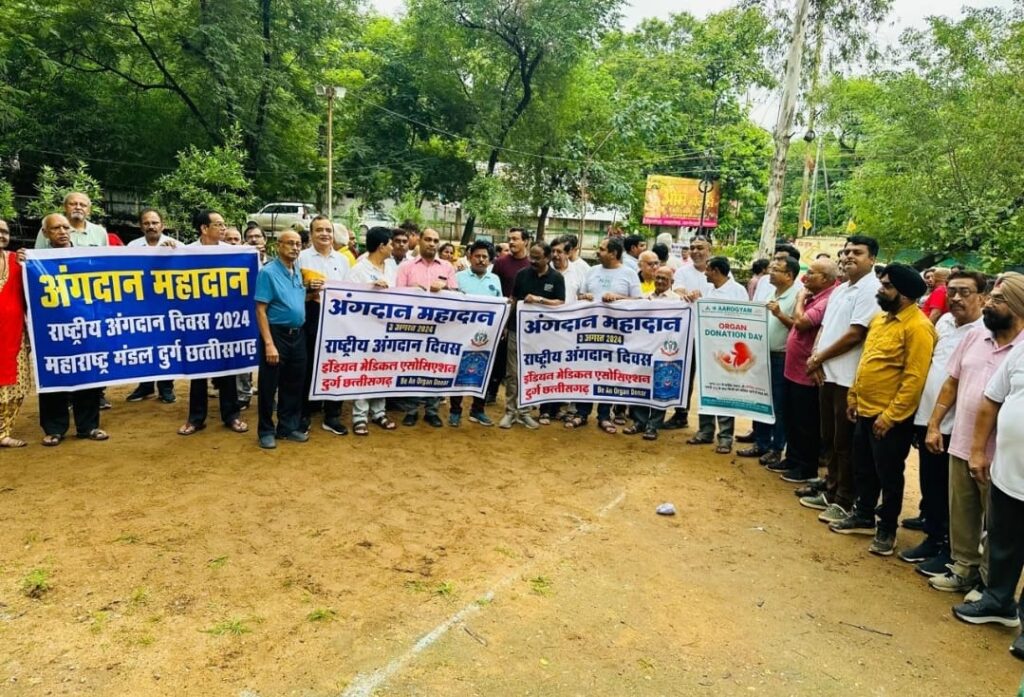 इण्डियन मेडिकल एसोसिएशन दुर्ग शाखा की पहल पर जेएलएन हॉस्पिटल सेक्टर 9 भिलाई, नवदृष्टि फाउंडेशन सामाजिक संस्थान एवं आरोग्यम अस्पताल ने राष्ट्रीय अंगदान दिवस के अवसर पर जटार क्लब दुर्ग से नाना नानी पार्क तक रैली निकालकर व नारे लगाकर आमजनों के मध्य जागरूकता अभियान चलाया।