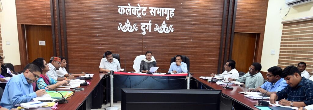 बैठक में एडीएम श्री अरविन्द एक्का, नगर निगम भिलाई के आयुक्त श्री देवेश ध्रुव, नगर निगम दुर्ग के आयुक्त श्री लोकेश चन्द्राकर, नगर निगम रिसाली के आयुक्त श्रीमती मोनिका वर्मा, नगर निगम भिलाई चरोदा के आयुक्त श्री दशरथ राजपूत, संयुक्त कलेक्टर श्री हरवंश सिंह मिरी एवं श्री विरेन्द्र सिंह, सभी एसडीएम, सभी जनपद सीईओ, नगरीय निकायों के सीएमओ सहित समस्त विभाग के जिला प्रमुख अधिकारी उपस्थित थे।