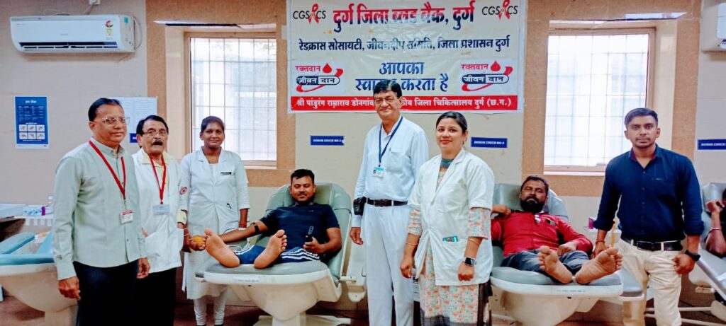 रक्तदान करने वालों में ललित ठाकुर द्वारा ‘एबी’ पाजिटिव ,संजू साहू ‘ए’ पाजिटिव,मो. असफाक ‘ओ’ पाजिटिव, रोहन ‘ए’ पाजिटिव और अन्य रक्तदाताओं के नाम शामिल…