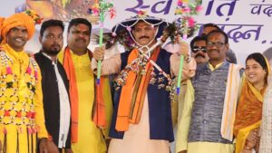 मंच पर पहुंचते ही विधायक गजेंद्र यादव ने मुख्यमंत्री जी के प्रतिनिधि के रूप में उपस्थित श्याम बिहारी जयसवाल का खुमरी पहनाकर स्वागत किये उन्होंने अपने उद्बोधन के पूर्व दोहा और हाथी घोड़ा पालकी जय कन्हैया लाल की उदघोष लगाकर बताये की विष्णुदेव साय सरकार ने गोवंश को संरक्षित करने गौ अभ्यारण योजना शुरू किये है। झूठ कितना भी ताकतवर क्यों न हो एक दिन प्रपंच टूटता है और सत्य की जीत होती है धैर्य और संयम बनाये रखे।