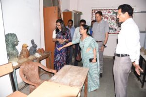 ड्राइंग सेक्शन में संभागायुक्त श्री राठौर ने छात्राओं द्वारा बनाई गई कलाकृतियों का अवलोकन कर उनकी सराहना की एवं प्राचार्य को इन कलाकृतियों को प्रदर्शित करने के निर्देश दिए। रेड क्रॉस सेंटर की प्रभारी डॉ. रेशमा ने संभाग आयुक्त एवं कलेक्टर को सेंटर की गतिविधियों के बारे में जानकारी दी। उन्होंने बताया कि यहां पर कौशल विकास प्रशिक्षण भी दिया जाता है।