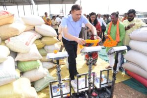 सेवा सहकारी समिति मर्यादित करंजा के करंजा भिलाई स्थित उपार्जन केंद्र में उन्होंने तौल मशीन की पूजा अर्चना कर धान खरीदी का शुभारंभ किया। उपार्जन केंद्र करंजा भिलाई में संभागायुक्त श्री राठौर एवं कलेक्टर सुश्री चौधरी ने किसानों की मौजूदगी में निर्धारित समर्थन मूल्य पर धान खरीदी का शुभारंभ किया।