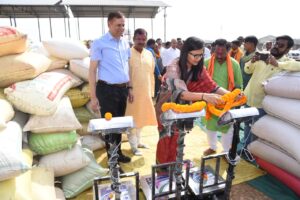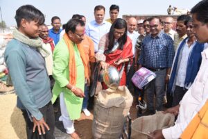 उन्होंने टोकन प्राप्त 4 किसानों से 288 क्विंटल धान खरीद कर धान खरीदी की शुरुवात की। सर्वप्रथम किसान श्री भोला साहू ने धान बेचने की कार्यवाही की। संभागायुक्त श्री राठौर एवं कलेक्टर सुश्री चौधरी ने श्रीफल भेंट कर किया किसानों का स्वागत किया। इसके अलावा ग्राम पंचायत करंजा, समुदा, जिंजरी तथा बासिन 4 ग्राम पंचायत के 10 किसानों ने धान बेचा। इसी प्रकार कोड़िया ग्राम पंचायत में स्थित सहकारी समिति में 15 किसानों के माध्यम से 903.60 क्विंटल धान बेचा गया।