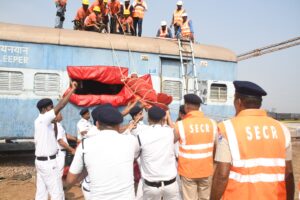 इसी कड़ी में आज 14 नवम्बर 2024 को यह अभ्यास प्रदर्शन राष्ट्रीय आपदा मोचन बल NDRF की बटालियन मुंडाली (कटक) ओडीसा, रायपुर मंडल संरक्षा विभाग, रेल आपदा प्रबंधन टीम ( ART/ARMV) की आपदा राहत टीम तथा सिविल डिफेंस द्वारा संयुक्त रूप से बी डी वाय डी/ बी एम वाय में किया गया।