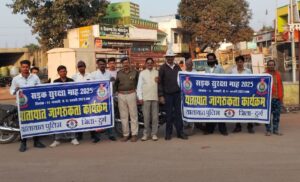 दुर्ग पुलिस अधीक्षक जितेन्द्र शुक्ला के निर्देश पर एवं सुश्री ऋचा मिश्रा अतिरिक्त पुलिस अधीक्षक (यातायात ) के मार्ग दर्शन एवं सतानंद विध्यराज उपपुलिस अधीक्षक (यातायात) के नेतृत्व में आम नागरिकोे और सडक उपयोगकर्ताओं को सडक सुरक्षा की गंभीरता औार चुनौती के बारे में जागरूक करने के लिए सडक सुरक्षा माह 2025 का आयोजन 1 जनवरी से 31 जनवरी 2025 तक यातायात पुलिस दुर्ग द्वारा किया जा रहा है। जिसके अंतर्गत प्रतिदिन शहरी एवं ग्रामीण क्षेत्र में अलग-अलग विभिन्न कार्यक्रम आयोजित कर वाहन चालको को जागरूक करने का प्रयास किया जा रहा है।