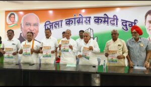कांग्रेस के जनघोषणा पत्र जारी कार्यक्रम में प्रवक्ता नासिर खोखर, महामंत्री परमजीत सिंह भुई, बृजमोहन सिंह , कौशल किशोर सिंह, कन्या ढीमर, पोषण साहू,गोलू गुप्ता, सुमीत वोरा, आनंद कपूर , पप्पू श्रीवास्तव , आसिफ अली , सौरव ताम्रकार, सहित अन्य कांग्रेसी उपस्थित रहे ।
