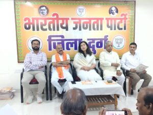 आगामी दिनों होने वाले नगरी निकाय चुनाव को लेकर दुर्ग जिला भाजपा कार्यालय में* भारतीय जनता पार्टी का घोषणा पत्र “अटल विश्वास पत्र” भारतीय जनता पार्टी की राष्ट्रीय उपाध्यक्ष सुश्री सरोज पांडेय, जिला संगठन प्रभारी राजीव अग्रवाल, जिला अध्यक्ष सुरेंद्र कौशिक उपाध्यक्ष राजेंद्र कुमार पाध्ये, मीडिया प्रभारी राजा महोबिया ने जारी करते हुए इस बात का संकल्प व्यक्त किया है कि यह घोषणा पत्र जनता की आकांक्षाओं और भाजपा के सेवा भाव का प्रतीक है।