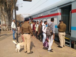 यात्रियों को ट्रेनों में चढ़ने एवं ट्रेनों से उतरते समय निर्बाध कोच से निकासी एवं प्रवेश हेतु पंक्तिबद्ध किया गया। अनाउंसमेंट के द्वारा यात्रियों को लगातार अपडेट करते रहे।