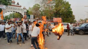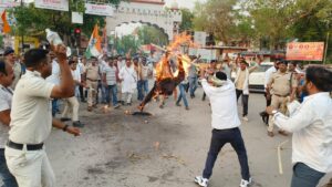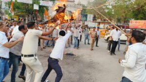 जिलाध्यक्ष राकेश ठाकुर के नेतृत्व में हुआ पुतला दहन का प्रदर्शन…