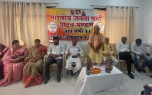 आयोजित बैठक पाटन मंडल बैठक में मुख्य रूप से जिला भाजपा अध्यक्ष सुरेंद्र कौशिक निवृत्तमान जिला अध्यक्ष जितेंद्र वर्मा मंत्री दीपक चोपड़ा मंडल अध्यक्ष रानी बंछोर युवा मोर्चा प्रदेश सह कोषाध्यक्ष नितेश साहू महिला मोर्चा जिला अध्यक्ष दिव्या कलिहारी पाटन नगर पंचायत अध्यक्ष योगेश भाले पूर्व मंडल अध्यक्ष खेमलाल साहू वरिष्ठ भाजपा नेता मेहतर वर्मा उपस्थित रहे।