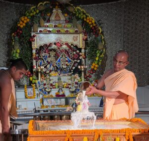 सर्वोच्च भगवान के पृथ्वी पर इस दिव्य अवतरण को भक्तगण संपूर्ण विश्व में अत्यंत धूमधाम से मनाते हैं। इस दिन मंदिर में भगवान श्री राधा कृष्ण का दिव्य चंदन अलंकार किया गया । संपूर्ण मंदिर को पुष्पों से सुसज्जित किया गया ।
