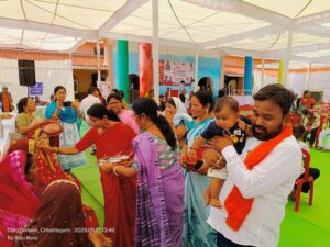 इस दौरान पांच गर्भवती महिलाओं को गोद भराई व 2 नवजात शिशुओं का अन्नप्रासन संस्कार किया। स्थल पर 30 से अधिक 30 किशोरी बालिकाओं का एचबी टेस्ट एवं उनको सेनेटरी पैड वितरण किया गया।साथ ही शिविर में त्वरित लोगो का आधार उपटेड सहित आधार कार्ड बनाया गया।
