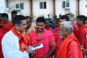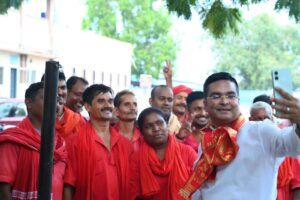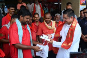 वैशाली नगर विधानसभा से मां वैष्णोदेवी दर्शन के लिए रवाना हो रहे जत्थे का दुर्ग स्टेशन में अभिनंदन करने पहुंचे विधायक रिकेश सेन को कुलियों ने अपनी व्यथा सुनाई।
