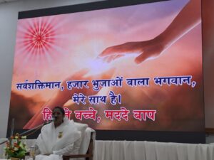 ब्रह्माकुमारी पूनम बहनजी ने अभ्यास कराते हुए आज का स्प्रीचुअल इंजेक्शन (मंत्र) “सर्वशक्तिवान हजार भुजाओं वाला भगवान मेरा साथी है, स्वयं भगवान मेरे मददगार हैं” और इसे विश्वास पूर्वक अनुभव करते हुए बार बार लिखकर अभ्यास करने के लिए होमवर्क दिया |