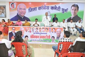 प्रदेश कांग्रेस कमेटी के आह्वान पर रविवार को प्रदेश के पूर्व गृहमंत्री ताम्रध्वज साहू के मार्गदर्शन में विधानसभा स्तरीय ‘संविधान बचाओ रैली’एवं दुर्ग ग्रामीण विधानसभा कांग्रेस कार्यकर्ता बैठक का आयोजन राजीव भवन दुर्ग में किया गया।