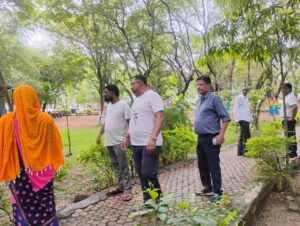 निरीक्षण के दौरान मौजूद उद्यान निरीक्षक से जहाँ की दादा-दादी नाना-नानी पार्क के बाहर व भीतर में आवश्यक गाजर घासों को कटाई करवानी के निर्देश दिये।