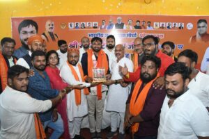 तत्पश्चात जिला भाजपा कार्यालय में भाजपा जिला अध्यक्ष सुरेंद्र कौशिक की मुख्य उपस्थिति में भाजयुमो प्रदेश अध्यक्ष राहुल योगराज टिकरिया का अभिनंदन किया गया।