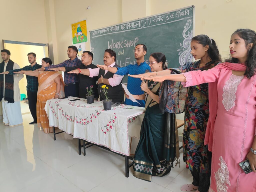 नवीन शासकीय संगीत महाविद्यालय, दुर्ग में दिनांक 26 नवम्बर को संविधान दिवस अत्यंत गरिमामय, अनुशासित एवं औपचारिक वातावरण में मनाया गया। संपूर्ण कार्यक्रम का संचालन महाविद्यालय की नियमावली, परंपराओं एवं निर्धारित प्रोटोकॉल के अनुरूप किया गया।
