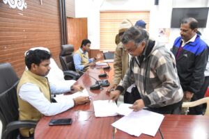 जिला कार्यालय के सभाकक्ष में कलेक्टर अभिजीत सिंह के निर्देशानुसार डिप्टी कलेक्टर उत्तम ध्रुव एवं हितेश पिस्दा ने जनदर्शन कार्यक्रम में पहुंचे जनसामान्य लोगों से मुलाकात कर उनकी समस्याएं सुनी।