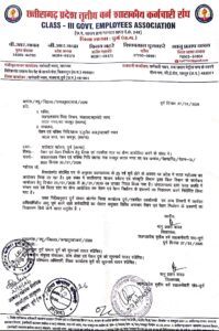 वित्त विभाग रायपुर एव संचालक,पेंशन एवं भविष्य निधि,ब्लाक ए, तृतीयतल, इन्द्रावती भवन अटल नगर, नवा रायपुर को कलेक्टर महोदय दुर्ग के माध्यम ज्ञापन प्रेषित किया है।