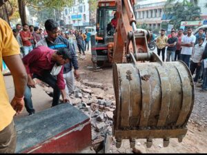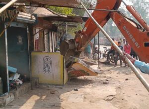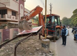 चौक चौराहों एवं सार्वजनिक स्थानों पर अतिक्रमण हटाने की कार्यवाही के तहत गौरव पथ रोड गांधी चौक से सुआ चौक तक अतिक्रमण की मुहिम चलाई गई जिसमें सैकड़ों लोगों पर कार्रवाई की गई। नालियों के ऊपर बनाए गए स्लैब,बाउंड्रीवाल, दुकान के बाहर टीन शेड एवम साइन बोर्ड तथा बैनर पोस्टर को भी हटाया गया निगम के द्वारा अतिक्रमण हटाने की कार्यवाही दिनभर चली नालियों के ऊपर बनाए गए स्लैब, बाउंड्री वाल दुकान के बाहर टीन शेड एवं साइन बोर्ड को भी हटाने की कार्यवाही की गई।कार्रवाई के दौरान अतिक्रमण प्रभारी शिव शर्मा, सहायक भवन अधिकारी विनोद मांझी, राजस्व निरीक्षक दुर्गेश गुप्ता, मनोहर गोस्वामी एवं अन्य कर्मचारी उपस्थित रहे।