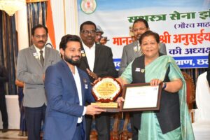 कलेक्टर श्री पुष्पेंद्र कुमार मीणा ने राज्यपाल सुश्री अनुसुईया उइके के हाथों ग्रहण किया सम्मान