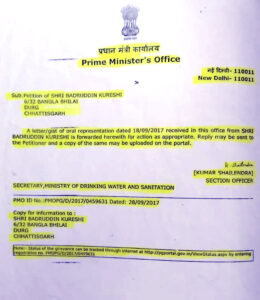 पूर्व राज्यमंत्री बदरुद्दीन कुरैशी ने बताया कि उच्च न्यायालय के आदेश 23.03.2017 की जानकारी तत्कालीन प्रदेश कांग्रेस कमेटी के अध्यक्ष व वर्तमान के मुख्यमंत्री भूपेश बघेल को भी रुक्का-रुक्का पता था। श्री भूपेश बघेल ने उस वक्त प्रदेश कांग्रेस कमेटी के अध्यक्ष के रूप में तत्कालीन मुख्यमंत्री डॉ. रमन सिंह को पत्र लिखकर आगाह किया था जिसके आधार पर समूचे प्रदेश में सुलभ शौचालयों से गांधी जी के स्केचेस और लोगो हटाने की कार्यवाही हुई।उन्होनें पत्र में सामान्य प्रशासन विभाग छत्तीसगढ़ शासन द्वारा स्वच्छ भारत अभियान के तहत राष्ट्रपिता महात्मा गांधी जी के तस्वीर एवं चरखे का दुरुपयोग नही किये जाने का स्पष्ट आदेश 6 जनवरी 2017 को जारी किया गया है, किन्तु देखने में आ रहा है कि छत्तीसगढ़ में प्रशासनिक स्तर पर इस आदेश का परिपालन नहीं किया जा रहा है जो माननीय उच्च न्यायालय के आदेश का अवहेलना है।