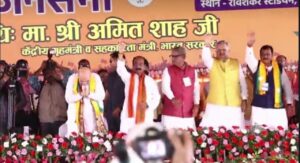 केन्द्रीय गृह मंत्री श्री शाह ने छत्तीसगढ़ की कांग्रेस सरकार पर भी जमकर हमला बोला और कहा कि छत्तीसगढ़ की बघेल सरकार वादाखिलाफी करने वाली सरकार है। पूर्ण शराबबंदी का वादा करके गांव-गांव में शराब की डिलीवरी करने वाली भूपेश सरकार ने न तो युवाओं को रोजगार दिया, न स्व-सहायता समूहों का कर्ज माफ किया। बेरोजगारी भत्ता के नाम पर युवाओं से छल करने वाली छत्तीसगढ़ की कांग्रेस सरकार ने रेडी-टू-ईट योजना में काम कर रही महिलाओं को बेरोजगार कर दिया। वृद्धा पेंशन योजना का कहीं अता पता नहीं हैं और छत्तीसगढ़ पर कर्जों का बोझ लाद दिया। तेंदूपत्ता संग्राहकों को पारिश्रमिक व बोनस के 500 करोड़ रुपए का भुगतान अभी तक बकाया है। श्री शाह ने कहा कि इतनी वादाखिलाफी करने वाली भूपेश सरकार को शर्म आनी चाहिए। शराब, कोयला, रेत, राशन, गौठान, पीएससी, कोरोना सेस, डीएमएफ, जमीन घोटाले करके हजारों करोड़ रुपए का भ्रष्टाचार करने वाली छत्तीसगढ़ सरकार के कार्यकाल में 25 हजार शिशु समुचित इलाज के अभाव में मर गए, पंडो आदिवासी कुपोषण के शिकार हैं, 5 हजार महिलाओं से बलात्कार के मामले दर्ज हैं, 1 हजार किसानों को आत्महत्या करनी पड़ी है।
