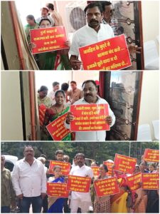 जिसमे पूर्व के स्वीकृत आवेदनों पर पहले जाति प्रमाण पत्र जारी करने की मुद्दे को लेकर पार्षद अजीत वैद्य के नेतृत्व में बड़ी संख्या में अनुसूचित जाति वर्ग के आवेदक हाथों में तख्ती लेकर पहुंचे थे तथा भाजपा पार्षद दल के साथ मालवीय नगर चौक से पैदल मार्च करते हुए खालसा पब्लिक स्कूल बैठक स्थल पहुंचकर विधायक अरुण वोरा के खिलाफ जोरदार नारेबाजी कर विरोध दर्ज किया इस दौरान पार्षद अजीत वैद्य उनके वार्ड से महिलाओ व युवाओं ने महापौर धीरज बाकलीवाल जी के गाड़ी रोककर उनके जाति प्रमाण पत्र जारी करने की मांग किया।