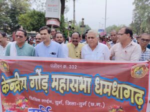 यहां से आदिवासी समाज की यह रैली राजेंद्र पार्क चौक एसपी बंगला के सामने से लोक कला पथ होते हुए वापस गोंडवाना भवन पहुंची ।