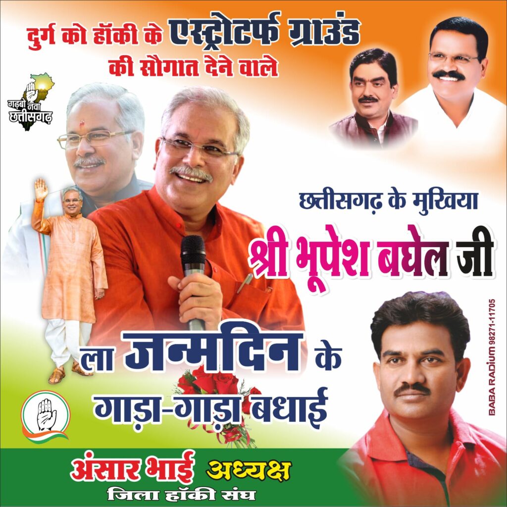 द सिटी रिपोर्ट न्यूज@दुर्ग. दुर्ग जिला हॉकी संघ के छत्तीसगढ़ प्रदेश हॉकी संघ का सदस्य और दुर्ग जिला हॉकी संघ के अध्यक्ष अंसार अहमद ने नेतृत्व में आज बुधवार की शाम 7 बजे दुर्ग के पुराना बस स्टैंड में भव्य आयोजन कर छत्तीसगढ़ के मुख्य मंत्री भूपेश बघेल के जन्मदिन की खुशियां लड्डू बाट कर मनाया जाएगा,,,