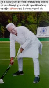 इसके चलते दुर्ग जिला हॉकी संघ ने माननीय भूपेश बघेल जी लंबी उम्र और दुबारा छत्तीसगढ़ सरकार में मुख्यमंत्री बनने अपनी शुभ कामनाओं के साथ बस स्टैंड से गुजरने वाले राहगीरों को लड्डू का वितरण किया जाएगा,,,