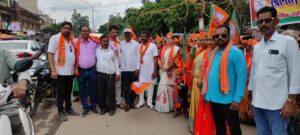 TheCityReportNews@दुर्ग. परिवर्तन यात्रा के माध्यम से प्रदेश भर में भ्रमण कर प्रदेश कांग्रेस सरकार के खिलाफ माहौल बना रहे प्रदेश स्तरीय नेताओं का परिवर्तन रथ जब दुर्ग शहर पंहुचा, तो साइंस कॉलेज के सामने जिला भाजपा अध्यक्ष जितेन्द्र वर्मा और भाजयुमो जिला अध्यक्ष जीत यादव के नेतृत्व में सैकड़ो बाइक में सवार युवा मोर्चा कार्यकताओं ने भारतीय जनता पार्टी जिंदाबाद के नारों के साथ परिवर्तन यात्रा की आगवानी की, आगे शहर भर में मंडल भाजपा और मोर्चा, प्रकोष्ठों की टीम ने यात्रा का जगह जगह भव्य स्वागत किया।