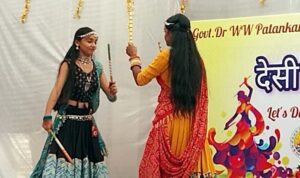 Thecityreportnews@ On the special occasion of Navratri festival, a grand Garba competition was organized by the dance department at Government Dr. Vaman Vasudev Patankar Girls Post Graduate Girls College, Durg. While giving information, Head of Department of Dance, Dr. Richa Thakur said that Garba competition is being organized every year continuously for the last 4 years.
