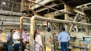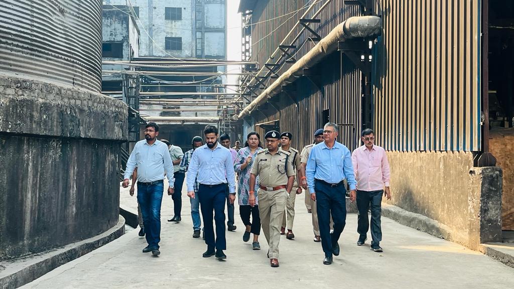 Thecityreportnews@दुर्ग. छत्तीसगढ विधानसभा निर्वाचन 2023 के परिपेक्ष्य में कलेक्टर श्री पुष्पेन्द्र कुमार मीणा एवं पुलिस अधीक्षक श्री रामगोपाल गर्ग 18 अक्टूबर 2023 को खपरी कुम्हारी स्थित छत्तीसगढ़ डिस्टिलरीज प्राइवेट लिमिटेड के निरीक्षण के लिए पहुंचे।