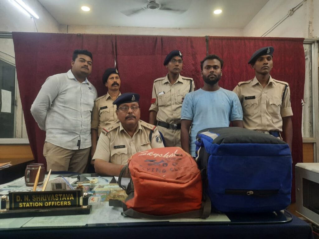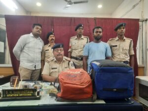 जो पूछताछ करने पर अपना नाम विमलेश कच्छप ,पिता-मुन्ना लाल कच्छप ,पता-बदायू (उ.प्र.)के पास दो पिट्ठू बैग जिसके अंदर कुल 15 किलोग्राम मादक पदार्थ गाँजा उड़ीसा से बदायू (उ.प्र.) अवैध रूप से परिवहन कर रहा था जिसकी क़ीमत लगभग 150000/रू आकी गई हैं जी.आर.पी.थाना बिलासपुर के अप.क्र.105/23 धारा 20(B) NDPS ACT के तहत कार्यवाही कर मान.न्यायालय में पेश किया गया। इस कार्यवाही में विशेष रूप से योगदान जीआरपी थाना प्रभारी SI,डी.एन. श्रीवास्तव प्र आर. विश्वनाथ चक्रवर्ती आर. अभिषेख माँझी व जी.आर.पी. एंटी क्राइम टीम के आरक्षक ,लक्ष्मण गाइन, संतोष राठौर ,सौरभ नागवंशी का विशेष योगदान रहा।