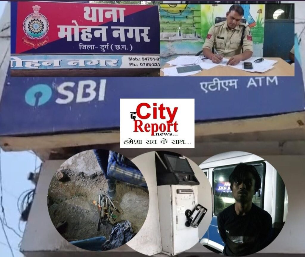 Thecityreportnews@दुर्ग. मोहन नगर थाना क्षेत्र में बीती रात दीपक नगर वार्ड में एक एसबीआई की एटीएम मशीन में आरोपी मनीष यादव उर्फ सागर ने बड़ी घटना को अंजाम देकर एटीएम मशीन को पूरी तरह सब्बल, गेती, रॉड के सहारे पूरी तरह तोड़ डाला था ।
