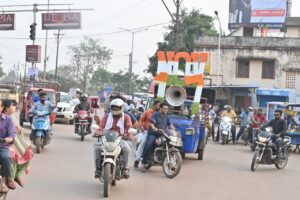 डॉ विश्वनाथ पाणिग्राही सामाजिक कार्यकर्ता एवम स्वीप वॉलंटियर ने अपनी एक्टिवा बाइक को स्वीप नारे से सुसज्जित कर एवम स्वीप नारे चित्रित वेशभूषा पहनकर पूरे रैली में उत्साह के साथ सहभागिता की जो विशेष आकर्षण का केंद्र रहा। रैली मे अंजनी सिंह, कुलदीप रौशन,सुरेन्द्र, कृष्णकुमार सोनबोईर, देवराज सिंह राजपूत, व्ही.के.सेमुवल,कृष्ण कुमार शर्मा, नरेन्द्र शर्मा, तामेश्वर पवार,लवकुमार, अरविंद शुक्ला, लक्ष्मी, राजेश्वरी सहित अन्य अधिकारी कर्मचारी शामिल हुए