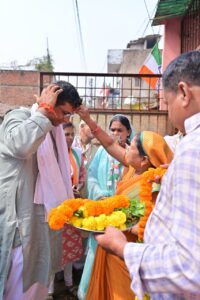 इस दौरान वार्ड में माताओं ने विधायक श्री यादव की आरती उतार कर उन्हें विजय तिलक लगाकर चुनाव जीतने का आशीर्वाद दिया। वहीं दूसरी ओर वार्ड की बहनों ने अपने विधायक भाई श्री यादव के हाथ में रक्षा सूत्र बांध और उनके जीत का पूरा विश्वास दिलाया।