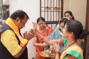 श्री बघेल ने कुम्हारी मंडल बड़ी कालोनी वार्ड क्रमांक 15 के शनि मंदिर में पूजा अर्चना कर जन आशीर्वाद मांगने कुम्हारी के वार्ड क्रमांक14/8/9/10/7/4/11/13//19 में जन सम्पर्क करते हुए जांजगीरी पहुंचे! जंहा उन्होंने कहा कि छत्तीसगढ़ में कांग्रेस में दुर्भाग्य से पांच बार के विधायक बनकर मुख्यमंत्री तक बनाए, लेकिन इसने पाटन को कलंकित तथा छत्तीसगढ़ को कलंकित किया है!छत्तीसगढ़ को कलंकित होने से बचाना है अब इनके पाप का घड़ा जब फूटता है तो नाश होता है!