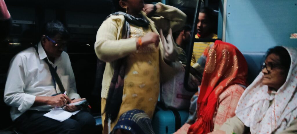 सफर में यात्रा कर रहे यात्रियों को बाथरूम तक सुविधा मुहैया नहीं हो पा रही,ट्रेन में लबालब भरे यात्री और उनका सामान मानो ,पूरा समय कब कौन उतर रहा और जगह खाली हुई की नही इस चिंता में अपने ही बर्थ में 6 लोगो को बैठाकर सफर कटता रहा,,मगर भारतीय रेलवे को यात्रियों की परेशानी का कोई सरोकार नहीं???