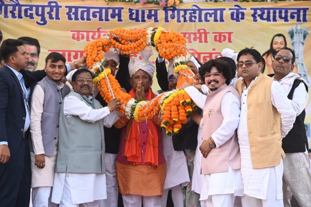 Thecityreportnews@दुर्ग. जिले के मिनी गिरौदपुरी धाम ग्राम गिरहोला में आयोजित संत समागम में मुख्यमंत्री श्री विष्णु देव साय बतौर मुख्य अतिथि सम्मलित हुए। कार्यक्रम में खाद्य मंत्री श्री दयालदास बघेल, कृषि मंत्री श्री राम विचार नेताम भी साथ मौजूद थे। कार्यक्रम को सम्बोधित करते हुए मुख्यमंत्री श्री विष्णु देव साय ने कहा कि मिनी गिरौदपुरी आस्था के इस केंद्र पर आयोजित संत समागम में सम्मिलित होने का सुअवसर मिला। बाबा गुरु घासी दास जी एक महान संत थे।