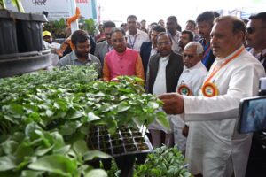 मुख्यमंत्री श्री साय ने कहा कि प्रधानमंत्री श्री नरेंद्र मोदी जी किसानों के आय को दोगुना करने के लिए प्रधानमंत्री कृषि सिंचाई योजना शुरू किया। मुख्यमंत्री ने कहा कि प्रधानमंत्री श्री मोदी जी के गारंटी को पूरा करते हुए हमारी सरकार के किसानों को प्रति एकड़ 21 क्विंटल के हिसाब से धान खरीदने का वादा पूरा किया। जल्द ही किसानों को अंतर की राशि एकमुश्त दिया जाएगा। मुख्यमंत्री ने इस मौके पर भगवान श्री जी के प्राण प्रतिष्ठा कार्यक्रम के किसान संघ की ओर से दो ट्रक लगभग 20 क्विंटल सब्जी से भरी गाड़ी को हरी झंडी दिखाकर अयोध्या धाम के लिये रवाना किया उन्होंने इसके लिए किसान संघ को बधाई दी। मुख्यमंत्री ने कार्यक्रम में उन्नत और प्रगतिशील किसानों को सम्मानित किया। मुख्यमंत्री श्री साय ने किसान मेला में लगे विभिन्न स्टालों का अवलोकन किया।