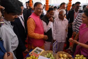 इस मौके पर उद्यानिकी विभाग के स्टॉल में प्रदर्शित एग्जॉटिक फ्रूट्स जैसे रोज़ वैक्स एप्पल, कश्मीरी एप्पल बेर एवं पैशन फ्रूट की जानकारी प्राप्त की। मुख्यमंत्री श्री विष्णुदेव साय ने स्टॉल भ्रमण के दौरान रोज़ वैक्स एप्पल का और कृषि मंत्री श्री राम विचार नेताम ने कश्मीरी एप्पल बेर का स्वाद चखा। साथ ही मुख्यमंत्री महोदय ने ऑयल पाम की खेती के बारे में जानकारी प्राप्त की। कृषि मंत्री श्री रामविचार नेताम ने कहा कि छत्तीसगढ़ युवा प्रगतिशील किसान संघ के प्रति आभार व्यक्त किया और कहा की यह पहला कार्यक्रम है, जिसमे किसानों के बीच शामिल होने का मौका मिला। किसानों के परिश्रम और प्रगतिशील सोच का परिणाम है जिसके कारण प्रदेश में छत्तीसगढ़ के किसानों का नाम रौशन हुआ।