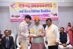 Thecityreportnews@दुर्ग. उप मुख्यमंत्री श्री अरूण साव की मुख्य आतिथ्य में अग्रसेन भवन में सद्भावना सर्व वैश्य समाज द्वारा सातवां वैवाहिक परिचय सम्मेलन का आयोजन किया गया। उन्होंने कार्यक्रम को सम्बोधित करते हुए कहा कि मनुष्य एक सामाजिक प्राणी है। कोई भी व्यक्ति अकेला नहीं रह सकता। जो लोग समाज या परिवार में रहते हैं वे इसलिए रहते हैं कि उन्हें एक दूसरे की सहायता की आवश्यकता होती है। व्यक्ति से परिवार, परिवार से समाज, समाज से शहर, राज्य और राष्ट्र बनता है। जो व्यक्ति हमें सुख-दुख में साथ दे उसे समाज कहते हैं।