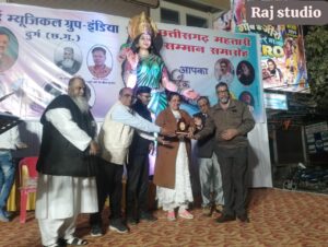 दुर्ग सांई म्यूजिकल ग्रुप इंडिया के तत्वाधान में बीते 28 जनवरी दिन रविवार को शहर के हृदय स्थल पुराना बस स्टैंड में छत्तीसगढ़ महतारी सम्मान समारोह सुनहरे सदाबहार गीत संगीत की महफिल के साथ सम्पन्न हुआ जिसमे विभिन्न क्षेत्रों में किए गए उत्कृष्ट कार्यों के लिए शहर की प्रतिभाओं को छत्तीसगढ़ महतारी सम्मान से सम्मानित कर समारोह का गरिमामयी आयोजन सफलतापूर्वक संपन्न हुआ।