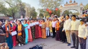 पश्चिम बंगाल स्थित संदेशखाली में महिलाओं के साथ जिस तरह से लगातार अनाचार व यौन उत्पीड़न की घटनाएं हो रही हैं उसे देखते हुए पश्चिम बंगाल की महिला मुख्यमंत्री ममता बनर्जी के द्वारा कोई ठोस कार्रवाई नहीं करना ,,,जिसकी वजह से लगातार इस तरह की अपराधिक गतिविधियों के कारण पश्चिम बंगाल की आम जनता परेशान है,,, जिसे देखते हुए आज भाजपा महिला मोर्चा जिला अध्यक्ष दिव्या कलिहारी के नेतृत्व में विरोध प्रदर्शन कर दुर्ग स्थित पटेल चौक में पश्चिम बंगाल की मुख्यमंत्री ममता बनर्जी का पुतला दहन किया गया,, और मांग की गई की जल्द से जल्द पश्चिम बंगाल में अपराधिक गतिविधियों पर रोक लगाये और अपराधियों पर कड़ी से कड़ी कार्रवाई की जाए अगर जल्द पश्चिम बंगाल में कानून व्यवस्था सुचारू रूप से नहीं चलाई गई तो केंद्र सरकार से अपील की गई कि वहां राष्ट्रपति शासन लगा दिया जाए ।